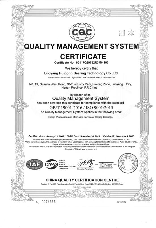 公司通過了1SO9001:2015質(zhì)量管理體系的認(rèn)證,軸承出口可根據(jù)客戶要求,進(jìn)行SG.S、DNV、ABS、ASIA等第三方國際檢測機(jī)構(gòu)的檢驗。