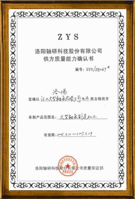 公司擁有一支***研發(fā)技術(shù)團(tuán)隊,被洛陽市評定為“洛陽市高精密薄壁軸承工程技術(shù)研究中心”、“市級企業(yè)技術(shù)中心”。并榮獲“河南省科技型中小企業(yè)”“洛陽市誠信民營企業(yè)”等榮譽稱號。公司有自己的“冶金軋機(jī)軸承研發(fā)中心”和“精密特種軸承研發(fā)中心”,先后在特大型精密高速球軸承、軍工高精密軸承的設(shè)計、制造、檢測方面取得優(yōu)異業(yè)績。在連鑄連軋支撐輥頸的軸承裝置、軋機(jī)軸承除塵裝置等技術(shù)創(chuàng)新方面先后獲得20余項***技術(shù)。公司于2008年成為河南科技大學(xué)民營企業(yè)合作伙伴及教學(xué)實習(xí)基地。